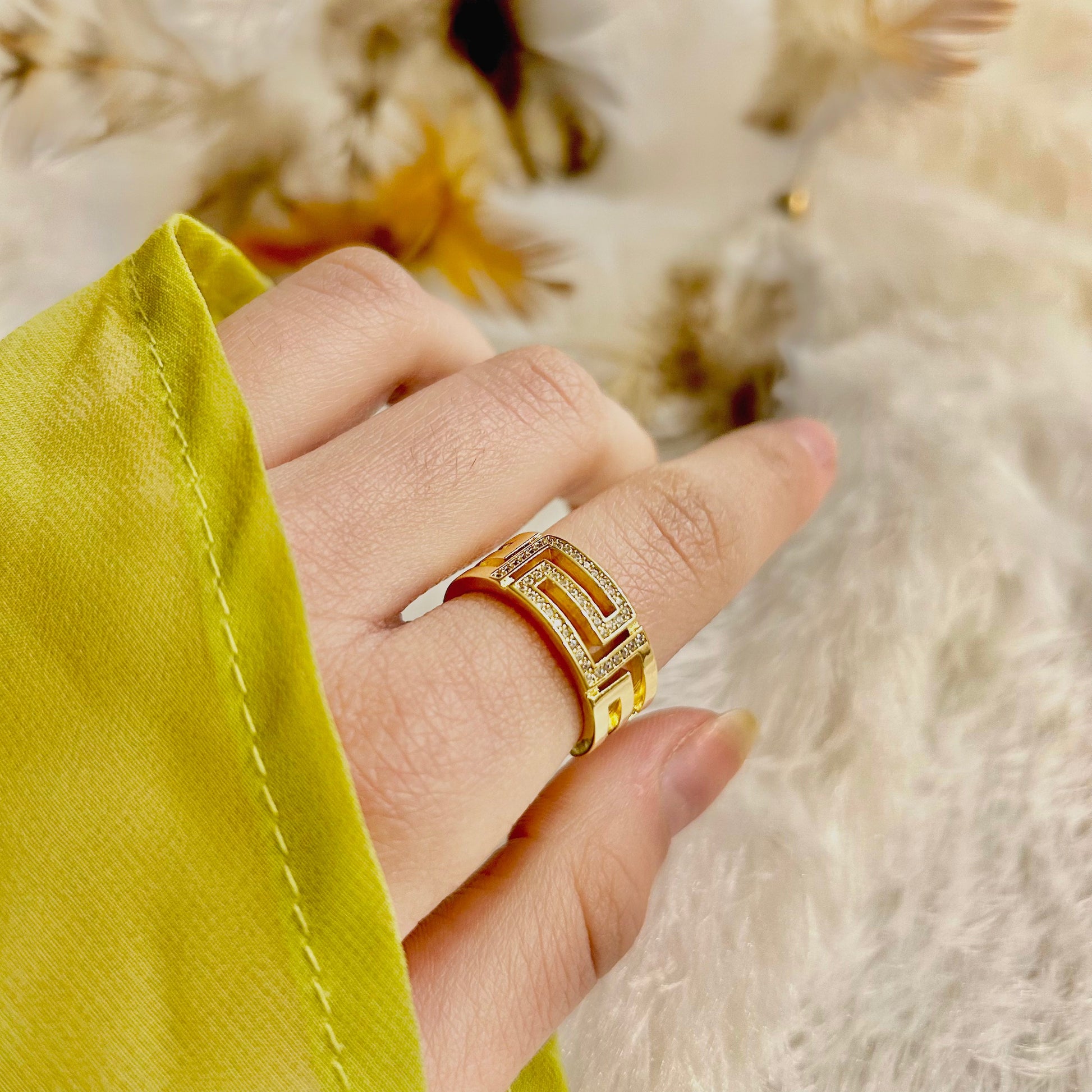 Zirconia Studded Maze Ring (One Size, Adjustable)