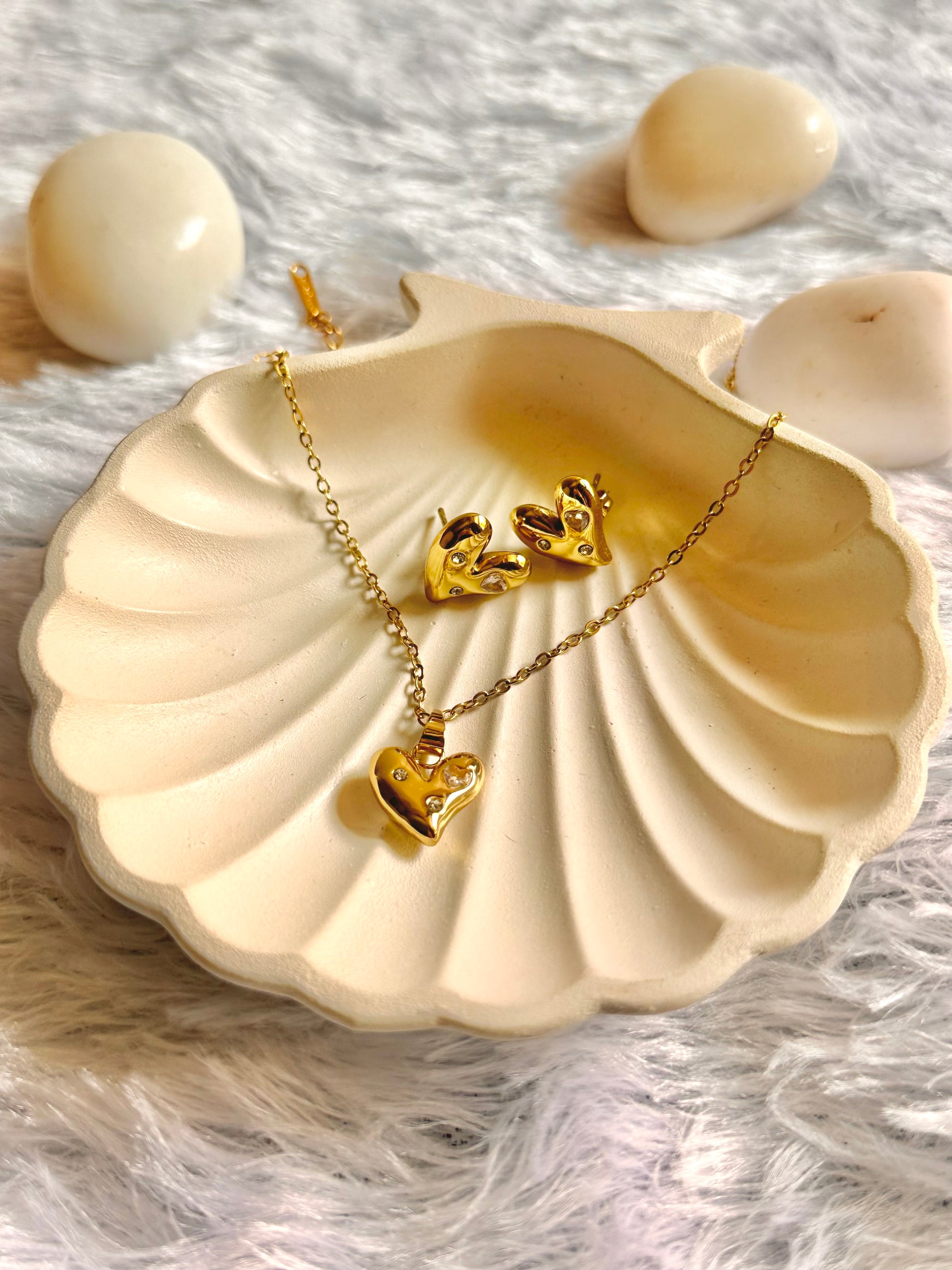 Zirconia Studded Hearts – Set of Necklace & Earrings