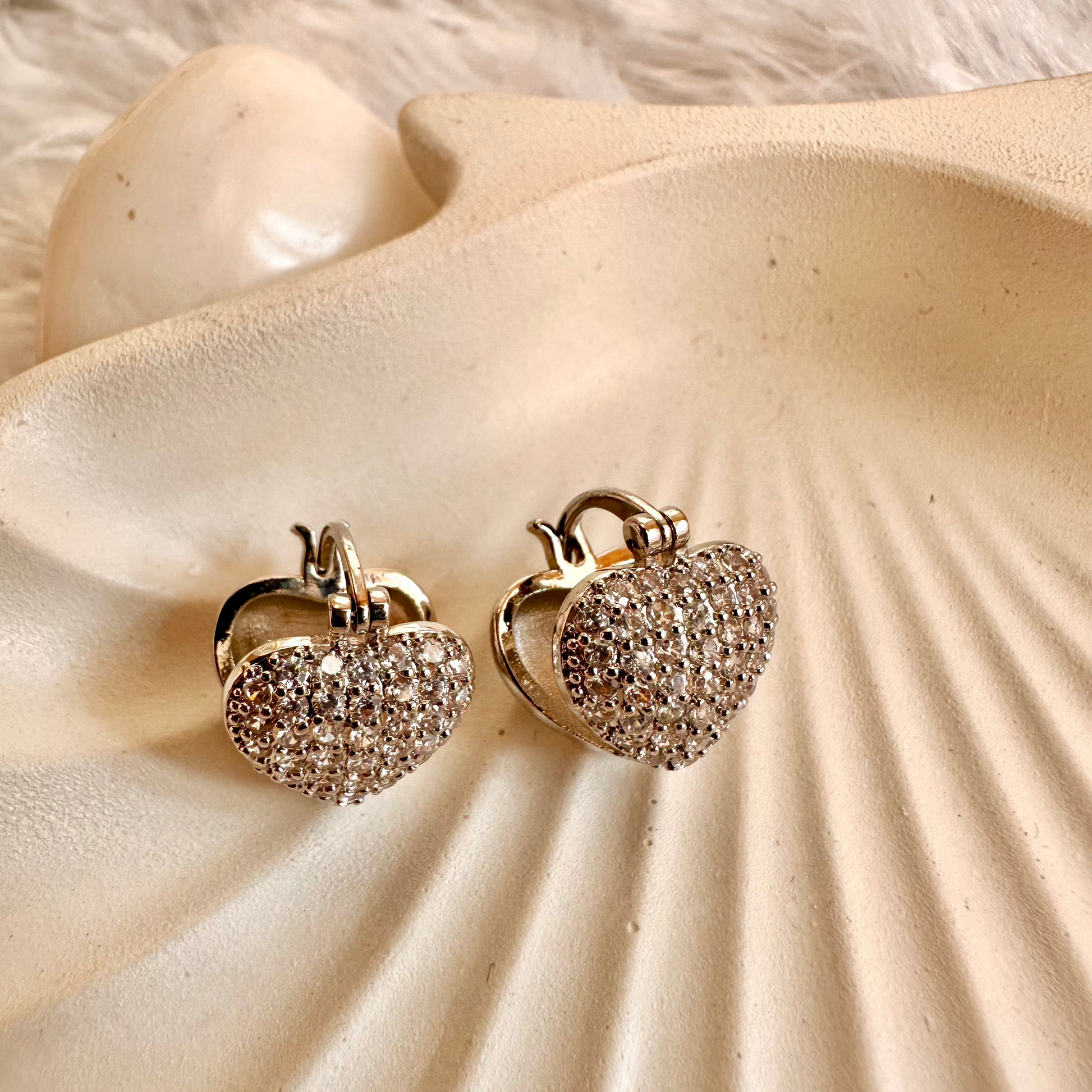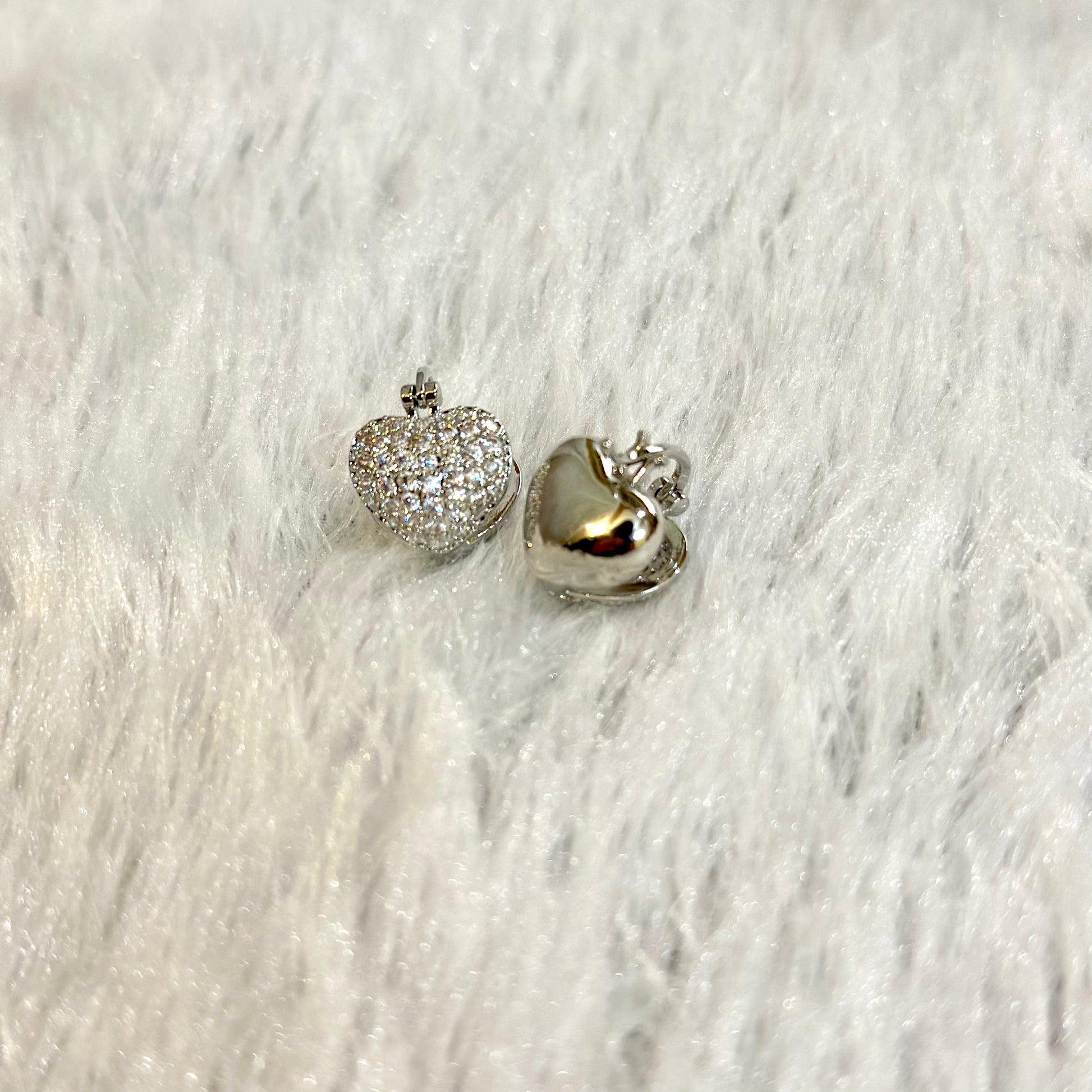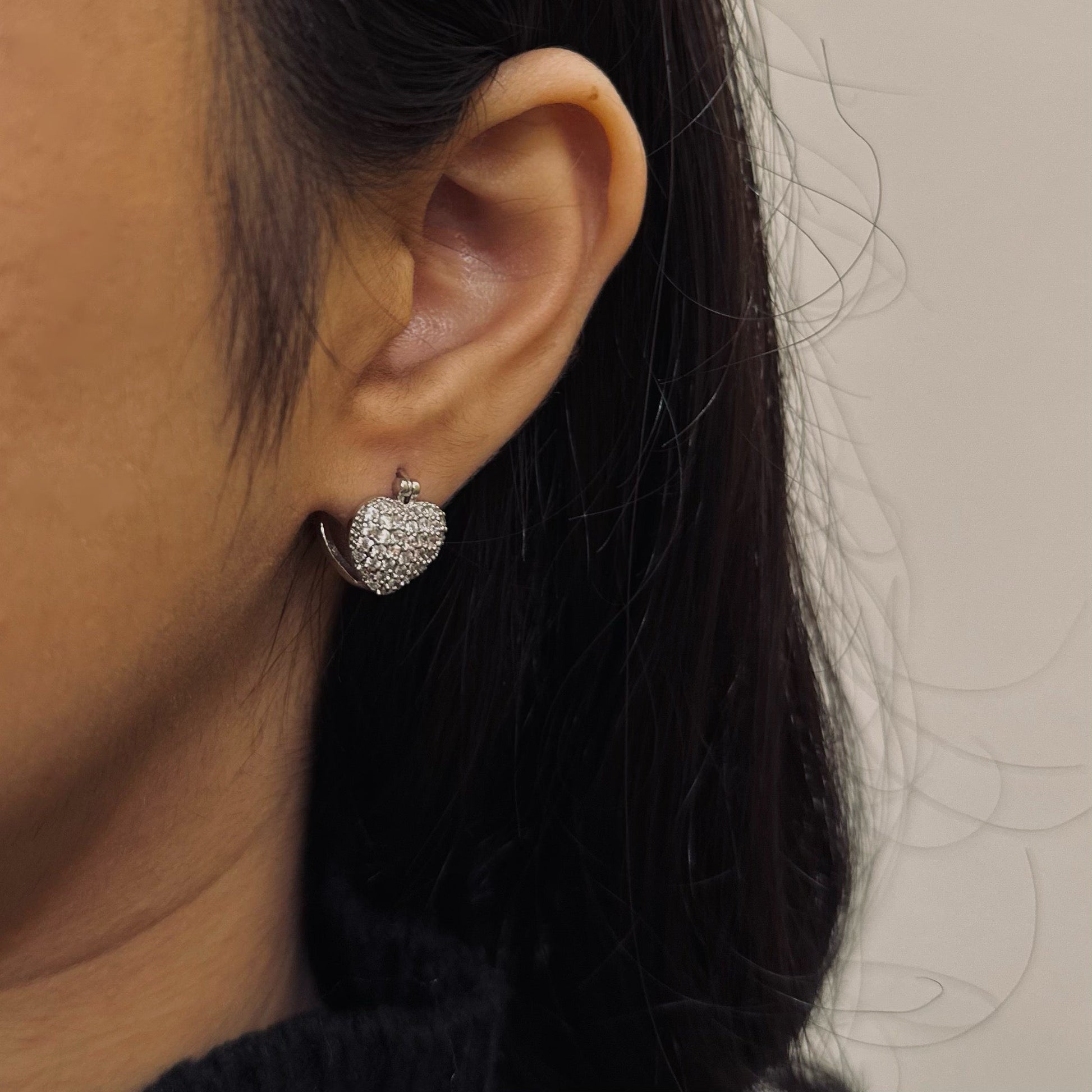 Zirconia-Studded Silver Hearts Earrings