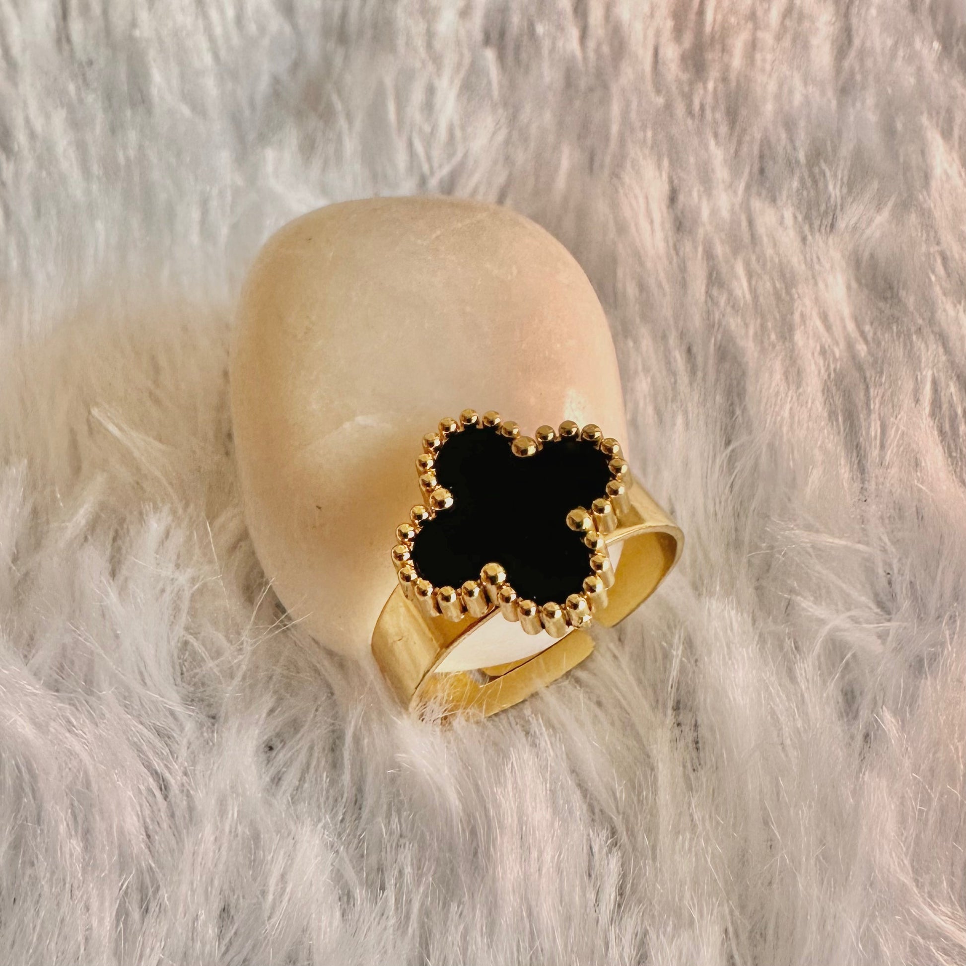 Black Clover Ring (One Size, Adjustable)
