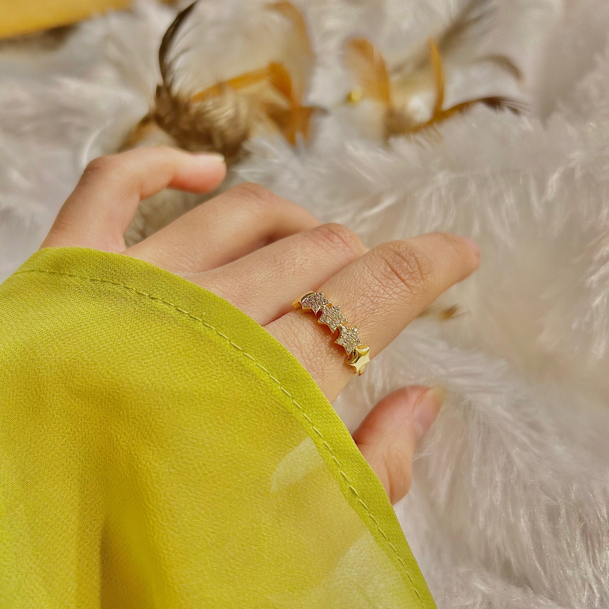 Zirconia Studded Starry Ring (One Size, Adjustable)